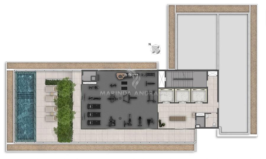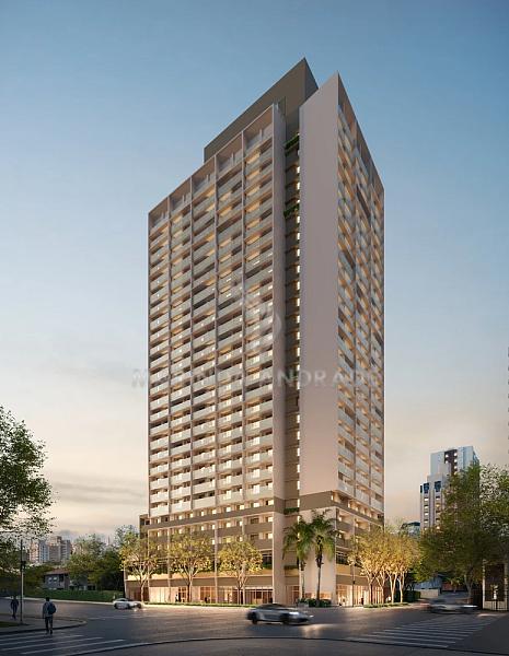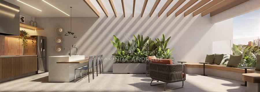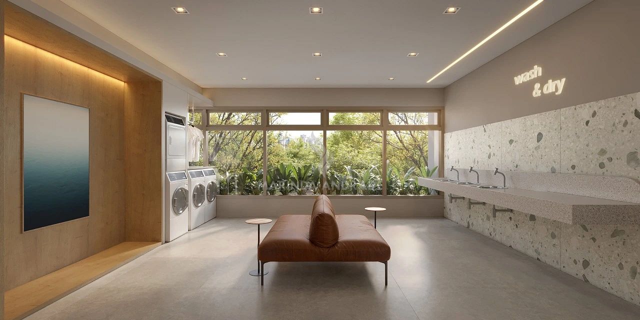 Conta com studios e apartamentos de 1 dormitório, ideais para morar ou investir, além de lazer completo distribuído entre térreo e cobertura, incluindo coworking, salão de festas, piscina, fitness, lounge e muito mais.
